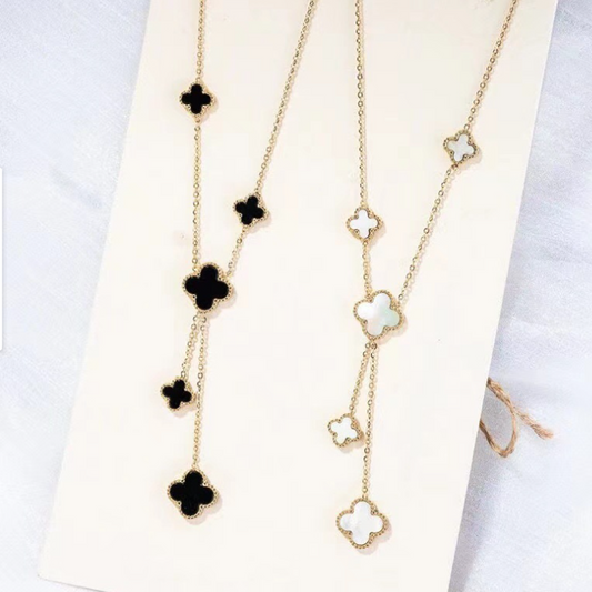 Lucky Floral Black and White Double Sides Necklaces