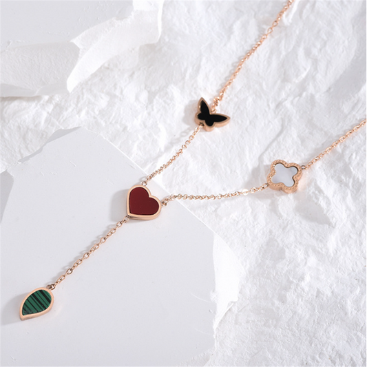 Black Lucky Floral Charms Necklaces