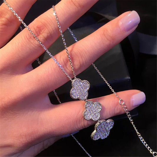 Cubic Zirconia Lucky Floral Dangle Necklaces