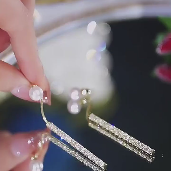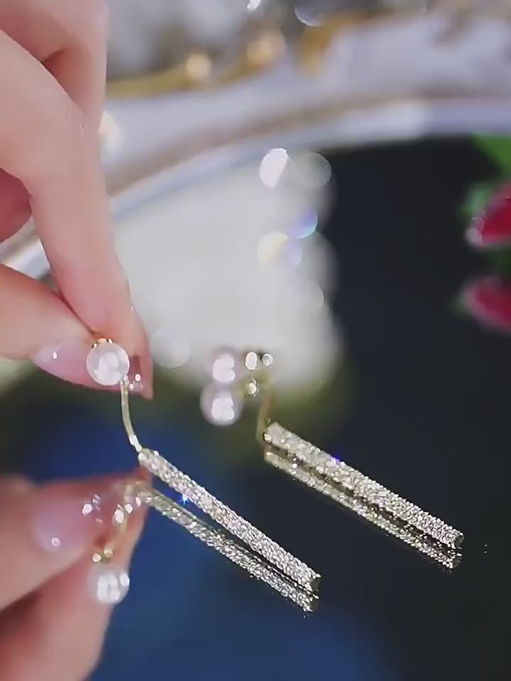 Minimalist Rhinestones Crystal Beaded Pearl Earrings