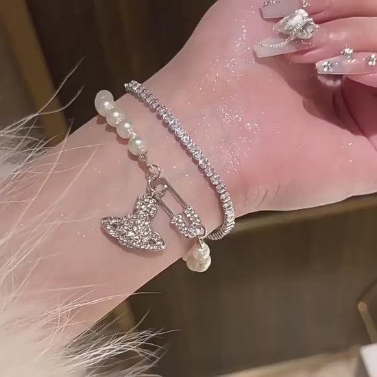 Pearl Rhinestones Crystal Beaded Saturn Bracelets